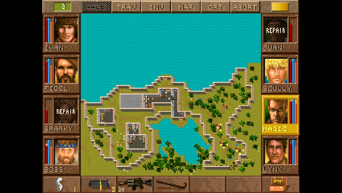If you enter via sector 3, take a high quality live plastic or live explosive with you and ensure you have a merc that knows how to lay it. Move your mercs away except the one with the live explosive or plastic and plant it on the lower small wall on the north-eastern vertical wall. Move that merc away to escape the explosive path, move the other mercs, particularly the sharpshooters, south of that wall. Once that wall is destroyed, wait or the turn. Enemies, hearing that explosion, will approach and your shooters can pick them off. A red shirt may surprise you from the south If you're lucky, red-shirts will appear and your mercs will interrupt them and can pick them off. If not, send your team through the destroyed wall and split them up. Some head along the top of the large building, cautiously. Another with your locksmith clears that building. The third, clears all the open spaces. Once you've conquered the sector, do not rest or pick up items, as enemies will attack from Sector 1 or Santino's hideout. Prepare your mercs in corners or trees and repel all attacks. As usual, the more you kill, the less enemies you will face when assaulting sector 1.